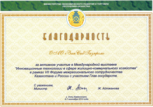 6-7 сентября в г. Усть-Каменогорск ОАО «Запсибгазпром» представил свою экспозицию на организованной в рамках форума выставке «Инновационные технологии в жилищно-коммунальном хозяйстве».