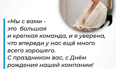 С праздником вас, с Днём рождения нашей компании! Спасибо вам за Ваш труд»!